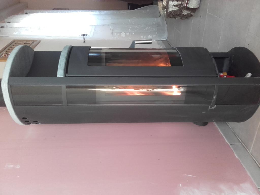 Pose d'un poêle à bois Wodtke modèle Lucky puissance 7 kW. Tubage du conduit existant. Artisan RGE qualibois