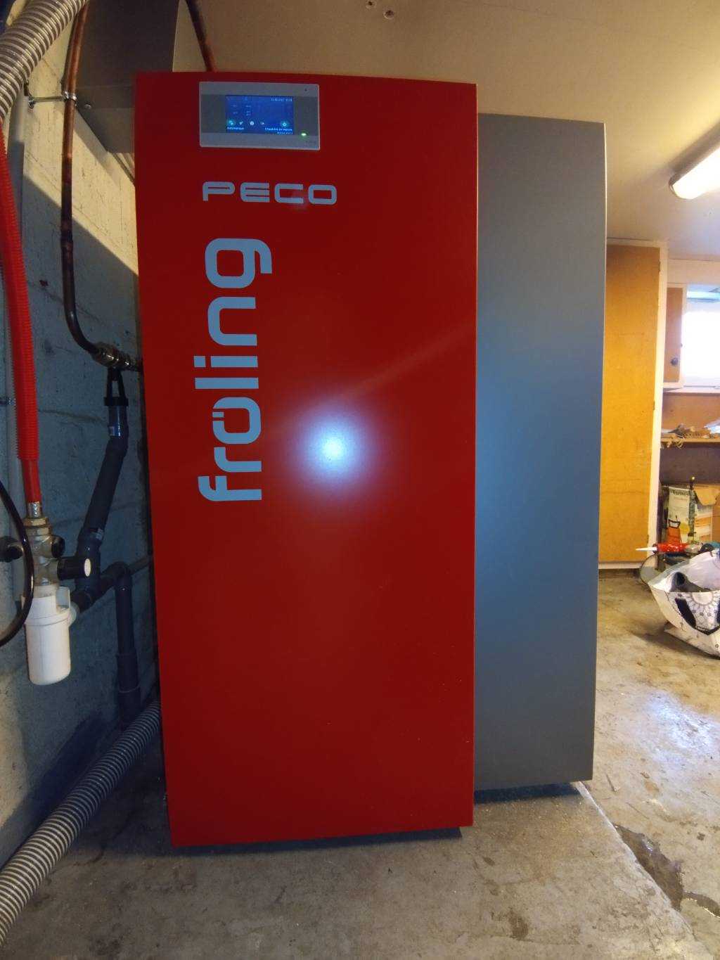 Avec la chaudière à granulés Froling Peco le client a une chaudière performante et simple d'utilisation. Sa plage de puissance variable et ses hautes performances permettent de chauffer cette maison en rénovation de 200m².