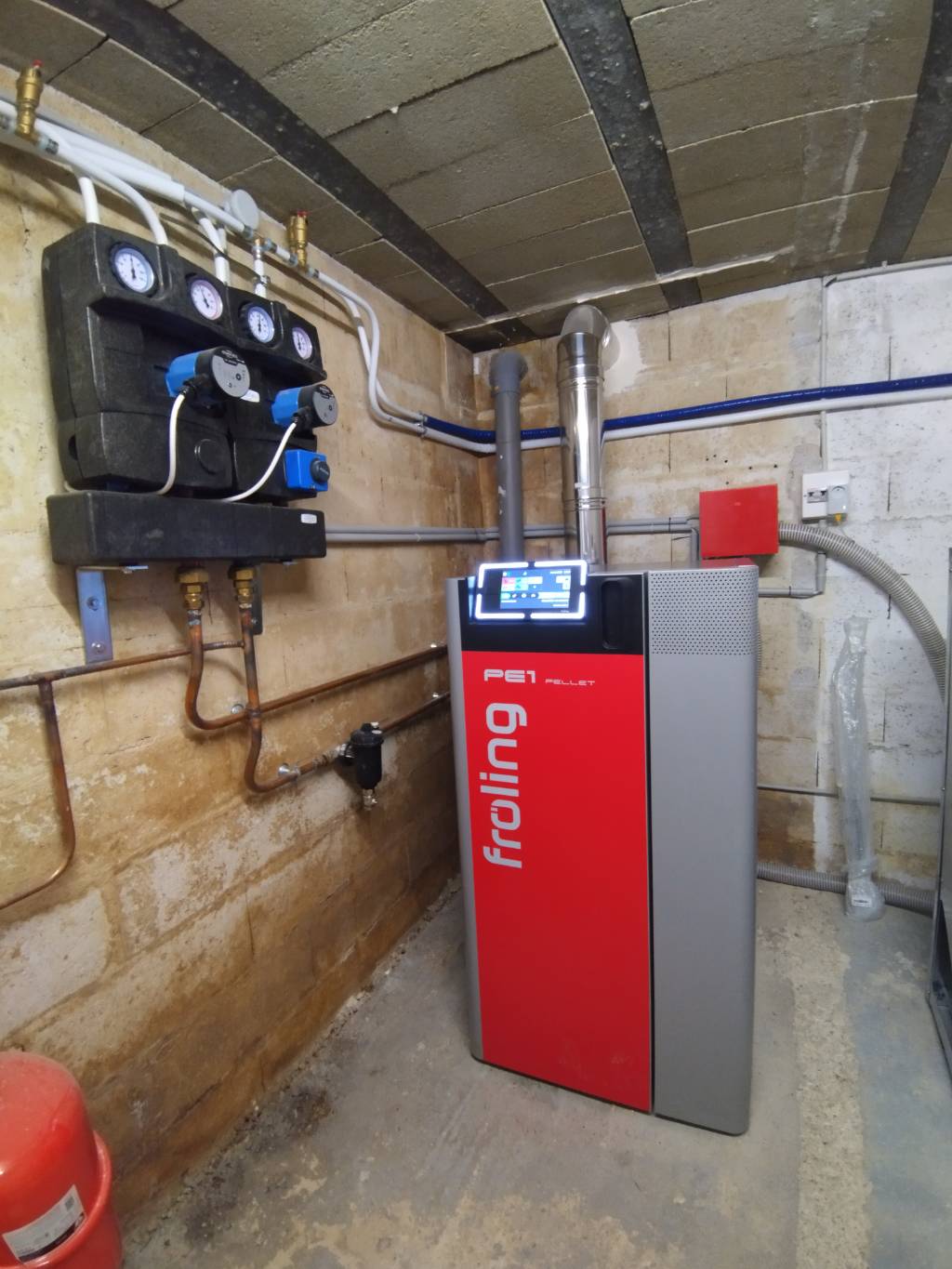 La chaudière assure aussi la production de l'eau chaude avec un ballon mixte granulés / solaire.