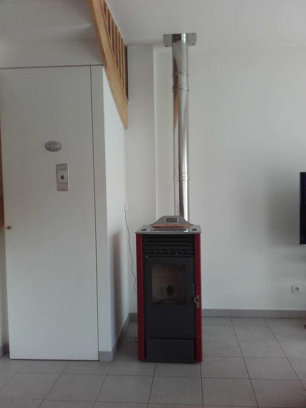 Installation d'un poêle à granulés Hoben H7 de 8 kW dans un pavillon de 130 m².